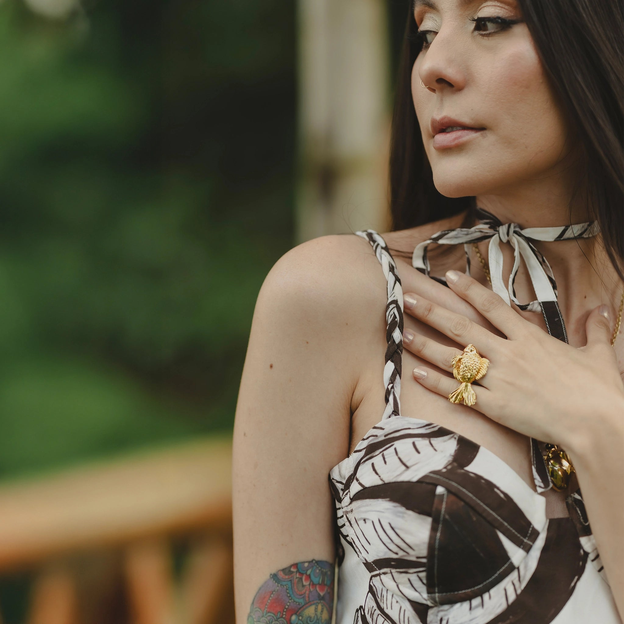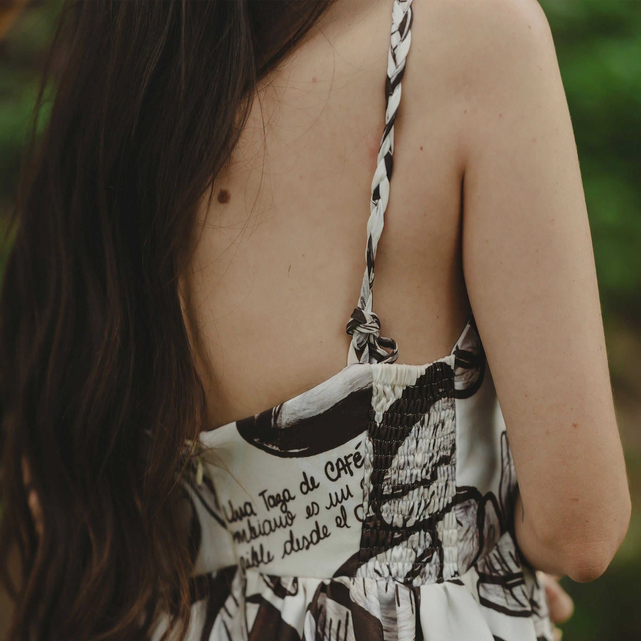 Este minivestido es un tributo vibrante al café colombiano ☕✨. Su silueta corta y fresca celebra la libertad y la identidad cultural con un estampado de granos ilustrados que evocan el aroma de nuestras raíces. Ideal para los días soleados y las noches de aventura, te acompañará con estilo y comodidad.