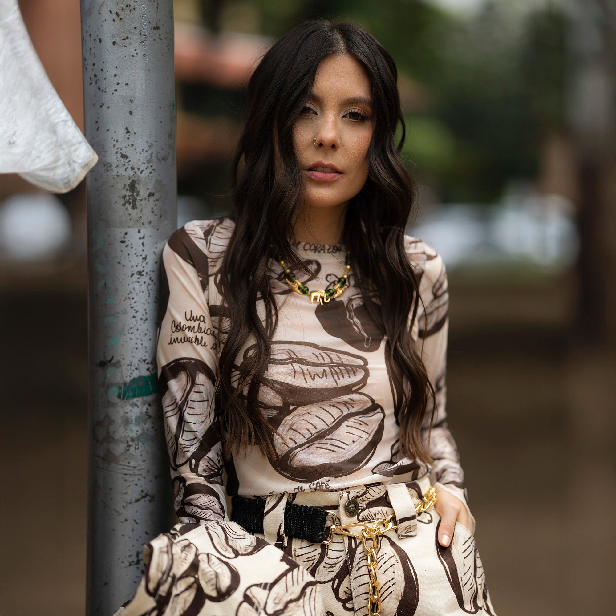 El Buso Malla Cafetero es una prenda que viste el cuerpo con transparencia y arte. Inspirado en la fuerza y dulzura del café, su diseño presenta un estampado de granos y corazones acompañado de la frase “Una taza de café colombiano es un abrazo invisible desde el corazón”.☕🖤