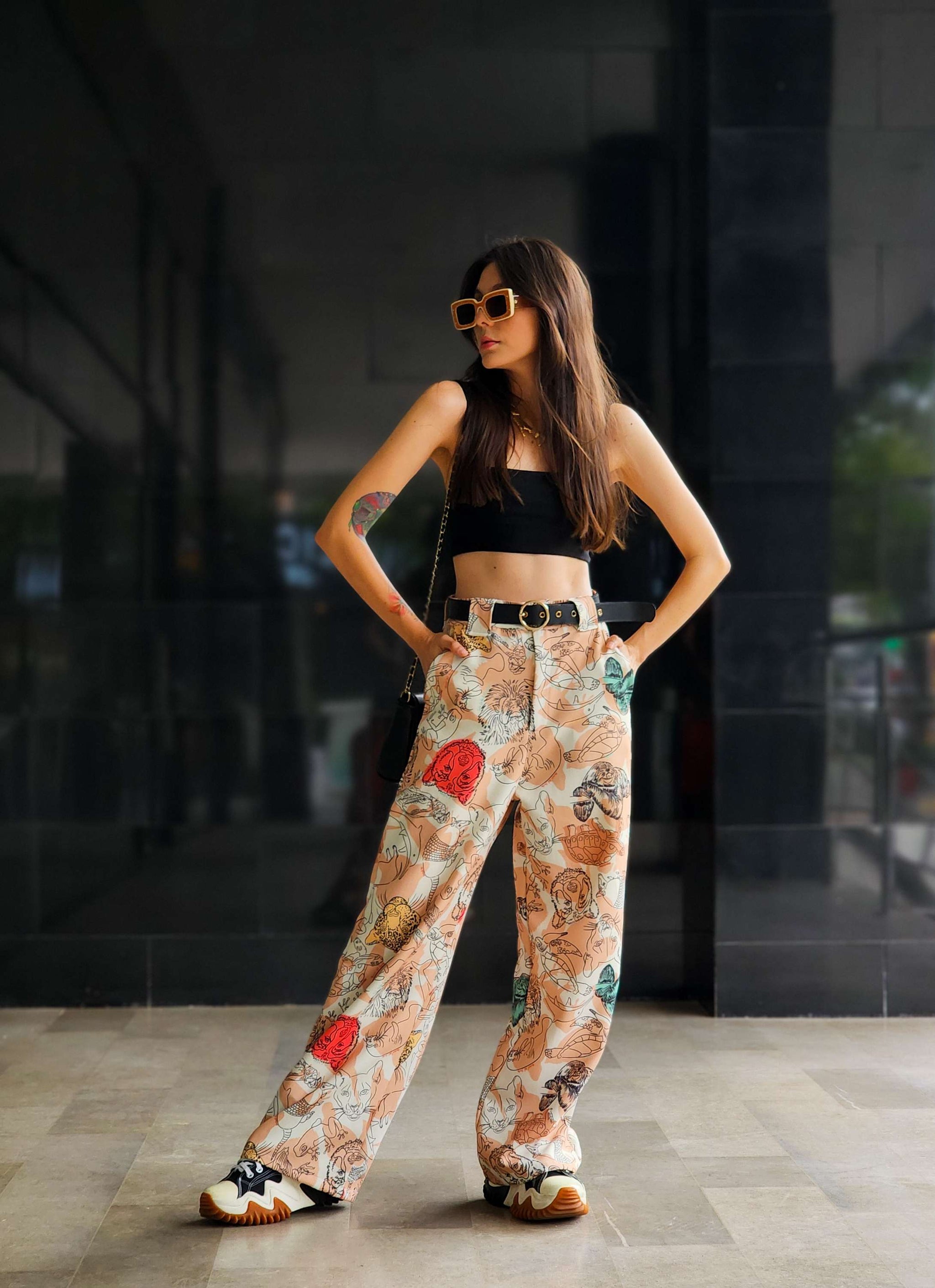 Pantalón tiro alto (a la cintura), de silueta amplia, caída suelta, bota recta (ancha) y bolsillos a los dos laterales.