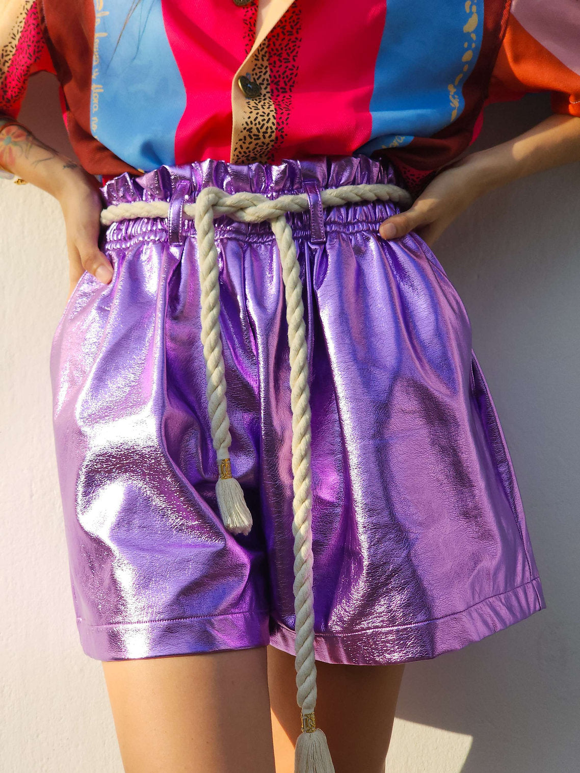 • Material sintético metalizado tipo cuero, elegante y duradero 💜✨️