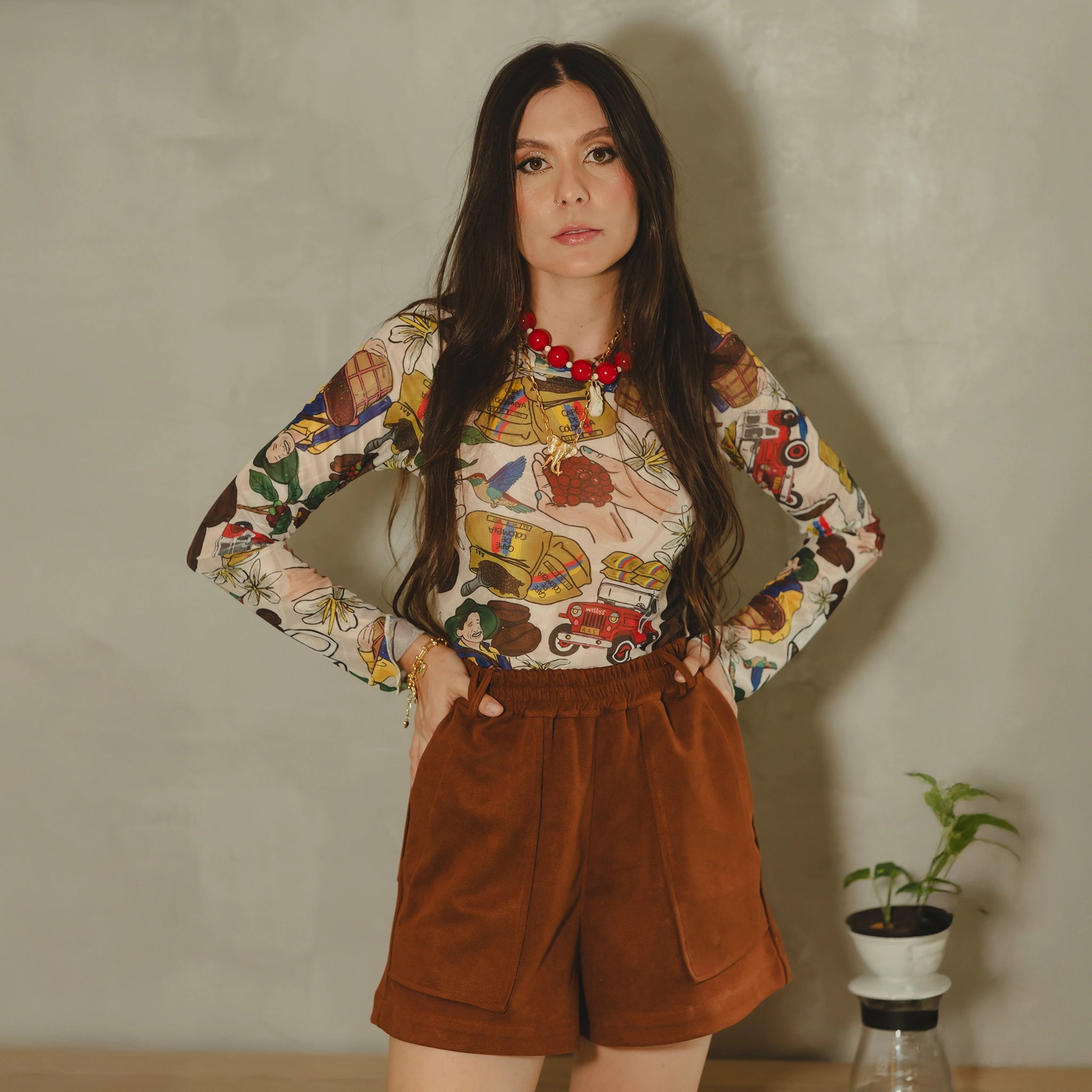 Short de tiro alto y silueta relajada captura el espíritu del café colombiano en cada costura. Su pretina con resorte posterior, bolsillos amplios y textura suave crean una pieza práctica y con carácter, lista para acompañarte en días soleados o en tus momentos más auténticos. Su color tierra evoca el grano tostado que inspira esta colección.