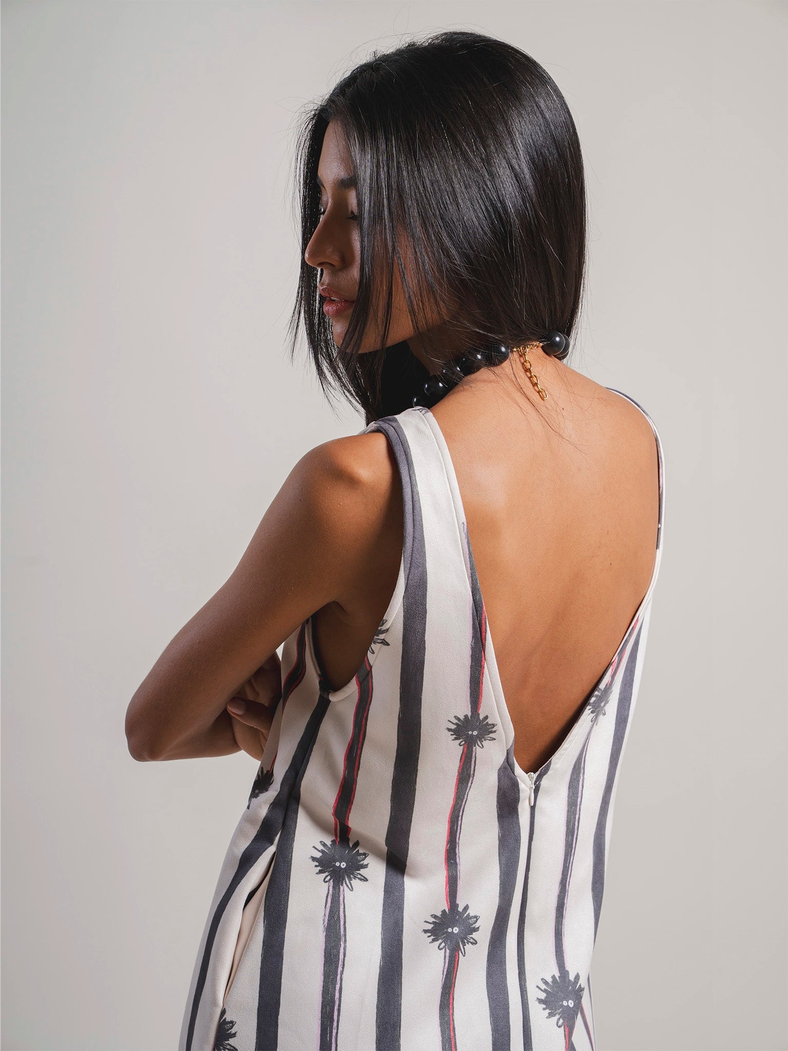Incluye bolsillos laterales y cierre invisible en la espalda para mayor comodidad.